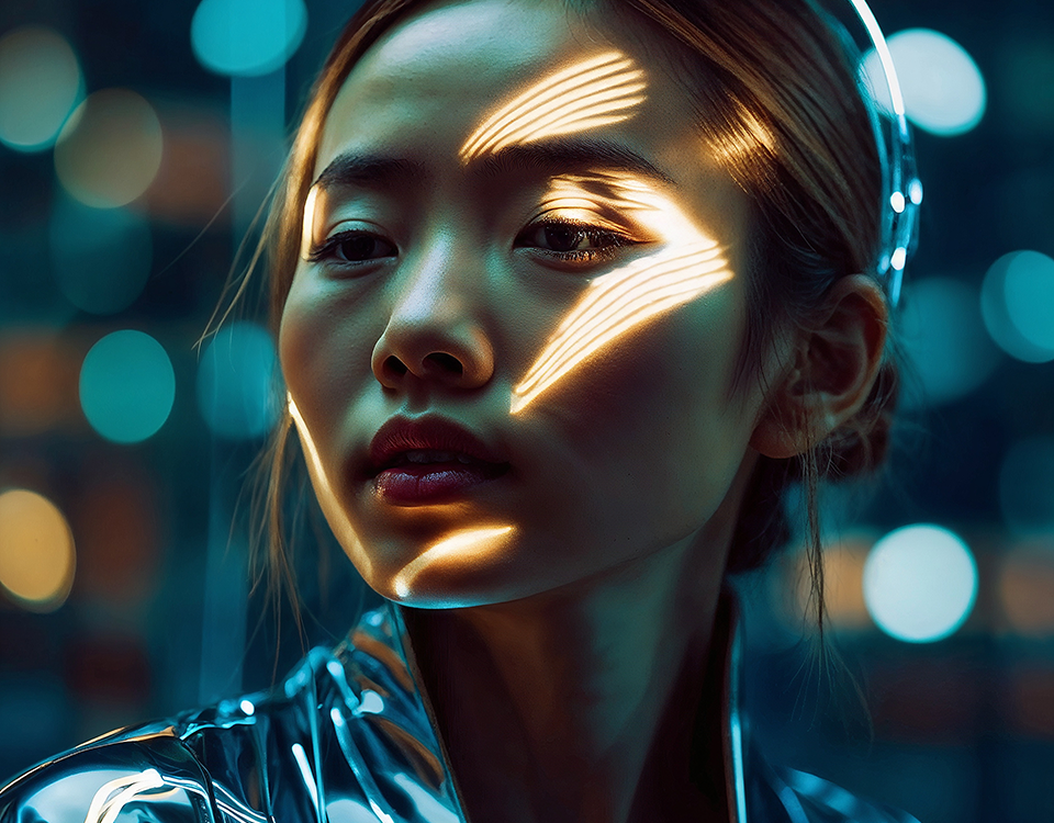 Intense gaze captured in a neon light bath, creating a vibrant, modern, and electric atmosphere created with artificial intelligence.